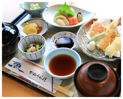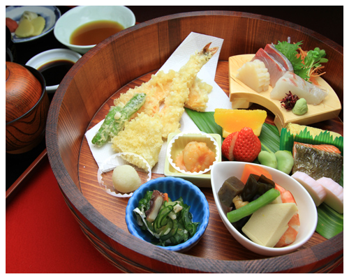 小鉢・刺身・天ぷら他・御飯・貝汁