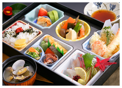 小鉢・刺身・酢物・天ぷら・他一品・貝汁・御飯・果物