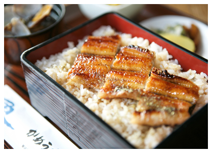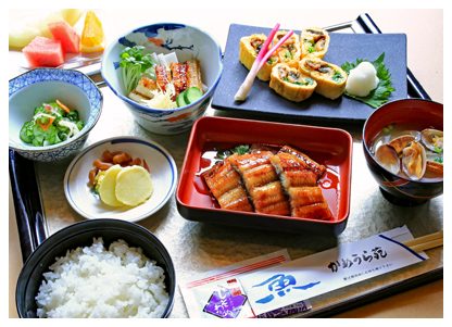 小鉢・蒲焼・うざく・うなぎ巻物・貝汁・御飯・果物