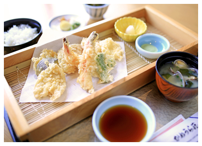 小鉢・刺身・酢物・天ぷら・貝汁・御飯